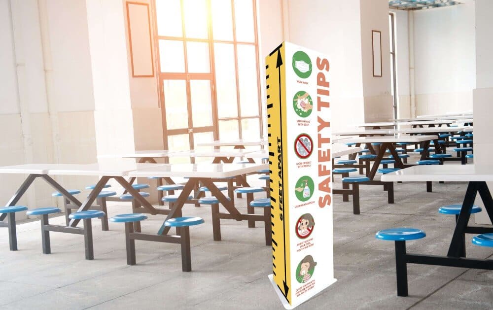 - Fold ‘n go towers are a great option for corridor infographics, including social distancing visual cues and hygiene practice icons, perfect for students of all reading levels.