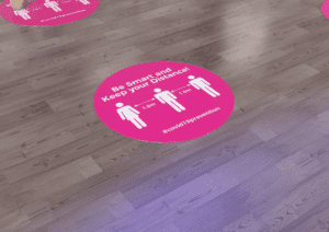 Properly directing your staff or customers during this time is more important than ever. As information changes, informing the public of new directives is critical. Whether the signs you need are indoor or outdoor, these solutions can be easily changed and updated. DGI’s colorful and flexible floor decals can help direct your customers efficiently and safely. Examples include: