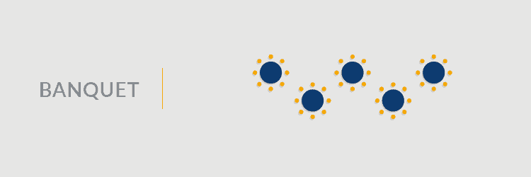 These meeting room setups are ideal for occasions that involve meals or meetings where the agenda includes small-group breakout discussions involving a maximum of 8 or 10 people. These meeting room setup styles are flexible and great for meetings where laptops and note-taking are encouraged, along with conversation.